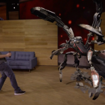 HoloLens talking point will likely be Microsoft's demo, called Project X. The company described this as a mixed-reality, custom gaming experience. Dan, Microsoft's chosen demo hero, strapped on a HoloLens and prepared to defend the room from a robot invasion (see above). Microsoft noted that upgrades to the HoloLens allowed Dan to interact with holograms in new ways—he was able to grab, wear, and deploy a holographic gauntlet as a weapon—and the holograms themselves could also surveil the room to customize their actions accordingly. Robots came out of the walls set up on stage, and they were able to interact with each other in their attack on Dan